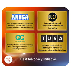 The Guilty by Absence initiative by ANUSA Legal Service tackled a systemic issue at ANU where students were unknowingly receiving criminal convictions for unpaid parking fines due to reliance on outdated postal addresses and the university’s refusal to use student emails. ANUSA monitored court listings, notified affected students, and acted in court to seek adjournments, allowing students to pay fines and avoid convictions. The campaign was amplified through media coverage, creating reputational pressure on ANU, which ultimately led to a lasting change in practice, with student names no longer appearing on court lists and fines now being communicated via email. In total, 74 students were protected from unfair criminalisation, while the initiative also raised awareness of student rights and legal support, promoting a fairer, safer campus culture.
